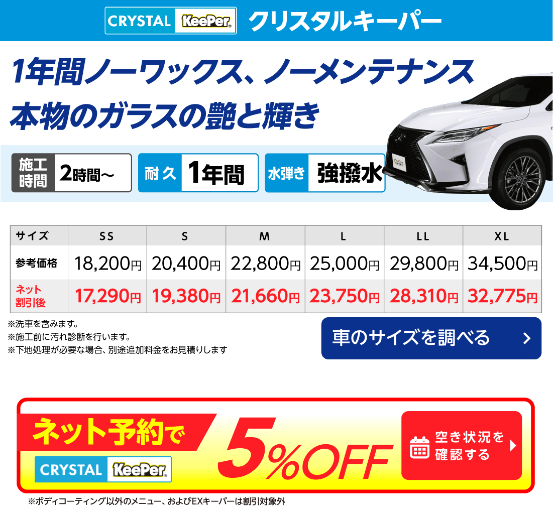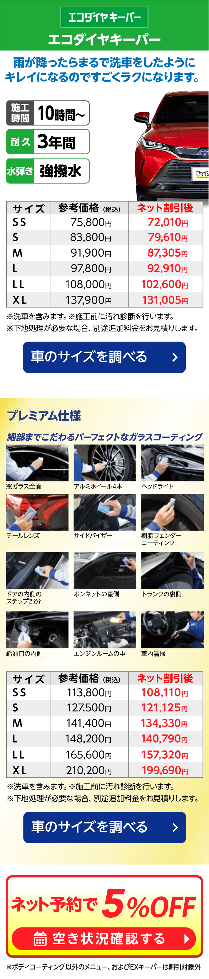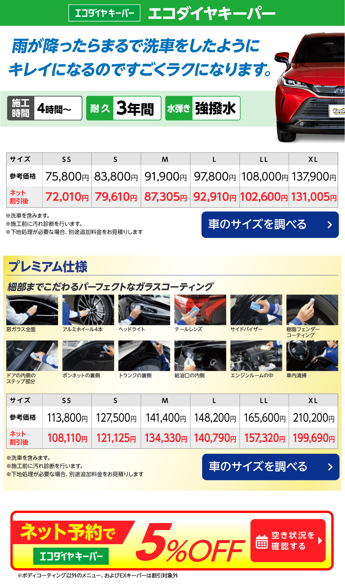 - 初年度登録から6か月以内のお車はコース料金から10%割引。