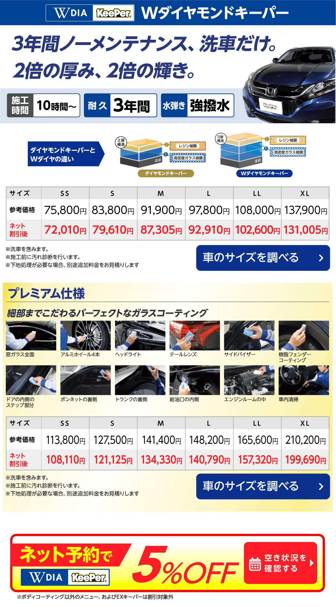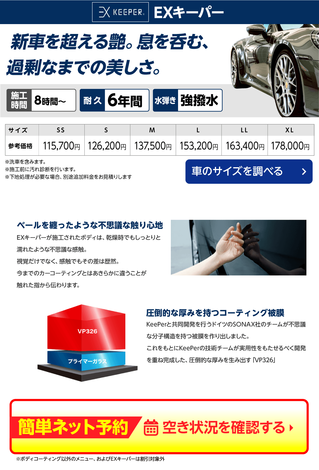 新車限定の最高級コーティング「EXキーパー」を施工できるEX1級資格の保持者が4名在籍しています。