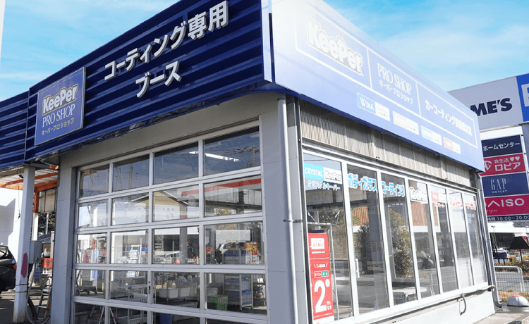 行政道路沿い、島忠HOMES(所沢店)様とapollostation(出光ガソリンスタンド)の間にある青いKeePerの看板が目印。